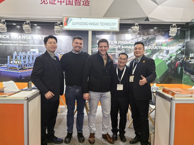 漢高科技亮相展會,與全球各地的不銹鋼制管企業(yè)進行技術交流。
