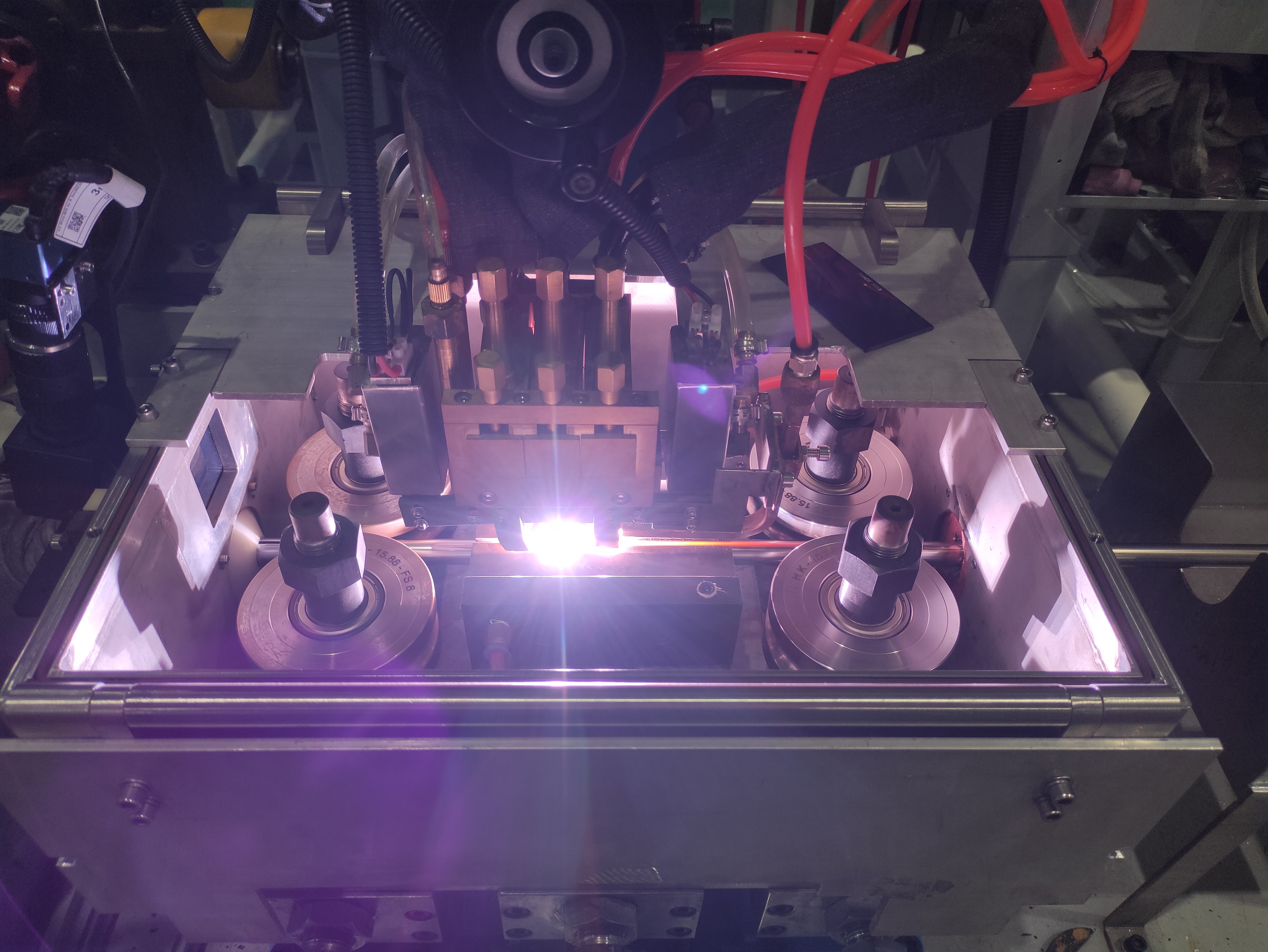 現(xiàn)代制管自動(dòng)化生產(chǎn)線,國(guó)內(nèi)大部分制管企業(yè)都是使用雙陰級(jí)加單電磁控,而漢高在經(jīng)歷不斷測(cè)試實(shí)驗(yàn),研發(fā)出三陰級(jí)加雙電磁控氬弧焊,相較于雙陰極加單電磁控,焊接速度與焊接質(zhì)量得到極大的提升,熱影響區(qū)范圍更小,管子性能更好。